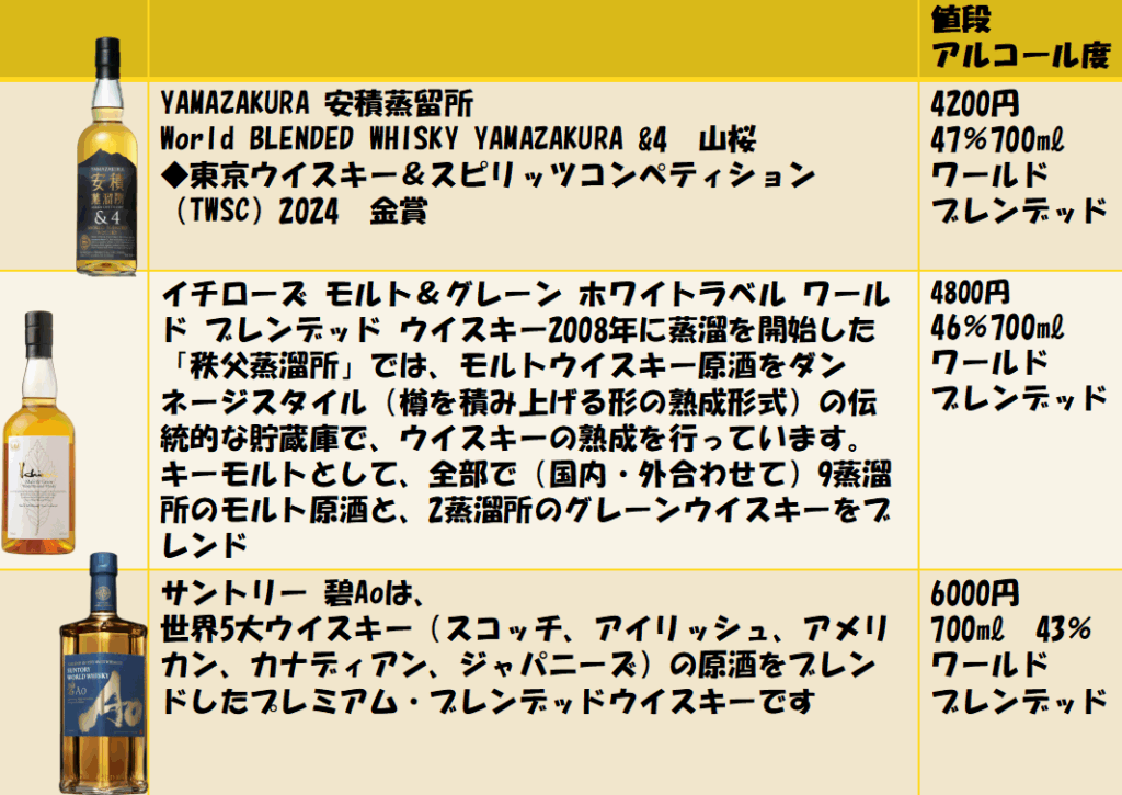 🥃 基本情報 YAMAZAKURA ワールドブレンデッド 安積蒸溜所&4