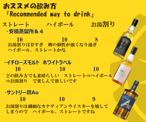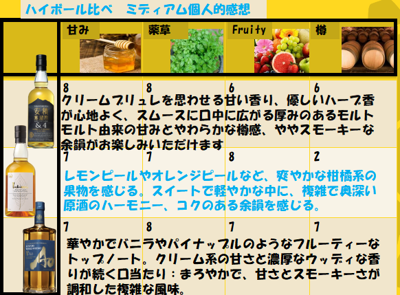 - ハイボール:フルーティーさが爽やかに広がり、初心者にもおすすめ
