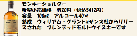- 種類:ブレンデッドモルト・スコッチウイスキー