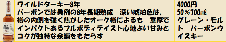 ワイルドターキー8年4000円 50%700㎖ グレーン・モルト バーボンウイスキー